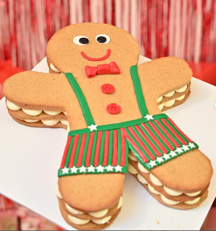 - A three-layer gingerbread cookie cake to decorate together, complete with buttercream filling and fondant details
