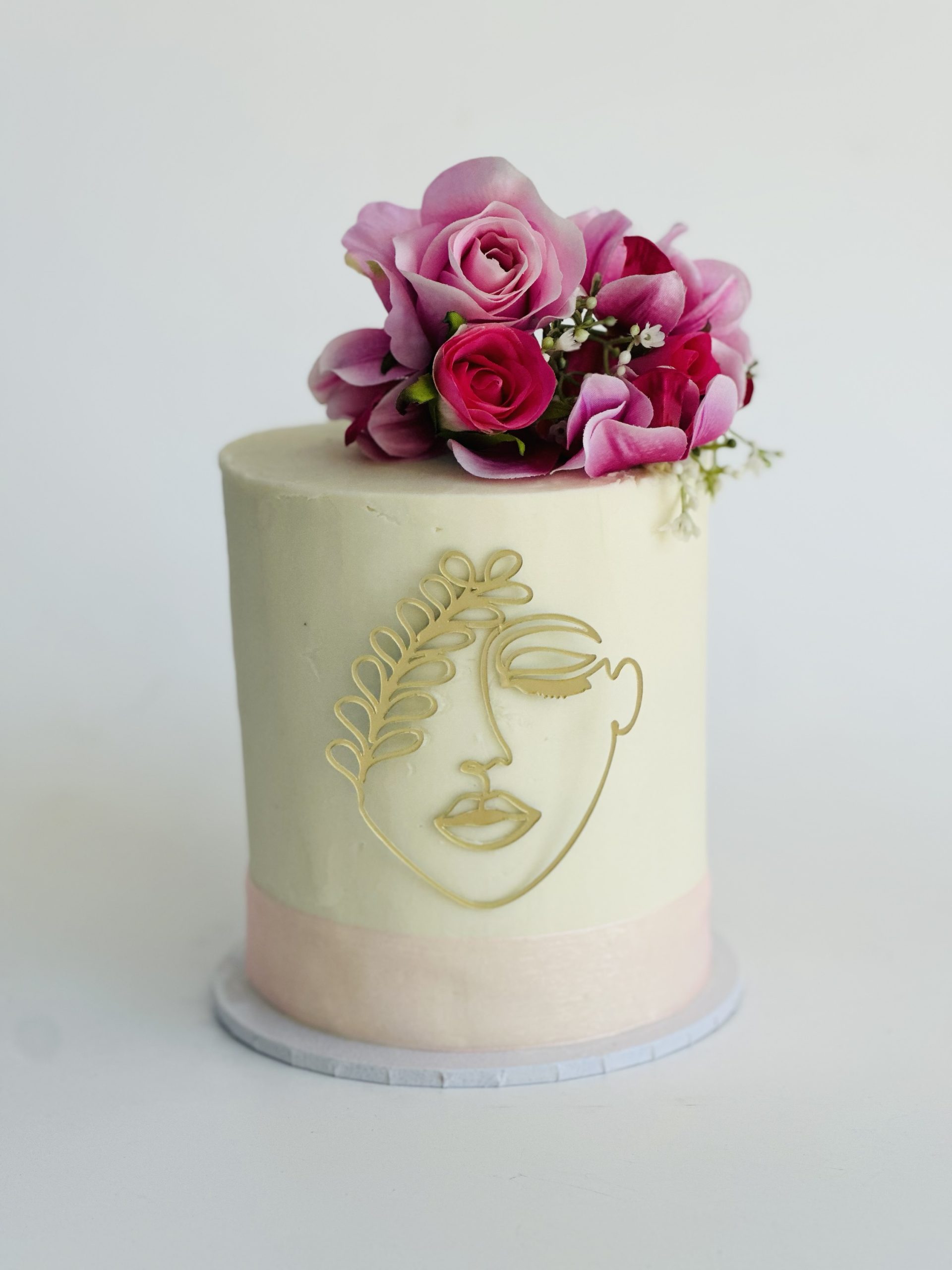 Indulge Mum this Mother’s Day with our rich and decadent chocolate mud cake, crafted to delight every sweet moment. Measuring 5” wide and serving approximately 16 portions, it’s the perfect size for sharing something special. Elegantly adorned with delicate silk florals and a stunning gold silhouette of a woman’s face, each cake is a unique work of edible art. Presented in a beautiful clear cylinder box and finished with a soft pink ribbon, it’s a gift that feels as special as she is. Please note, flower varieties and silhouette details may vary slightly based on availability, making every cake one-of-a-kind.